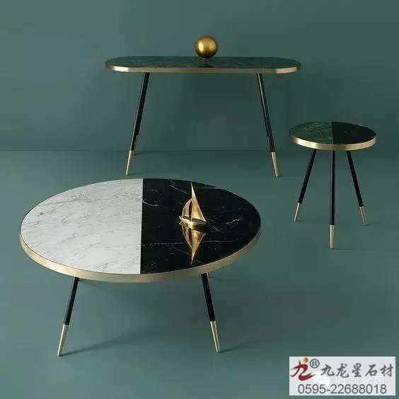↑黑白大理石紋拼色的桌幾,黑金拼色的桌腿,你家比你還美得高貴冷艷。