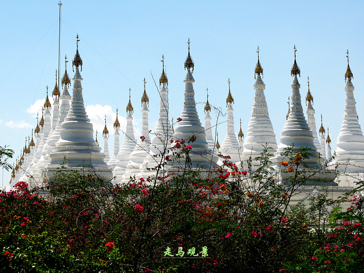 阿都瑪希寺廟里,由729塊大理石雕刻成的經(jīng)書,組成了整齊圣潔的佛塔,在陽光和鳳凰樹紅色花球的環(huán)繞中,看著這些潔白的石經(jīng),心里會有平靜浮起。