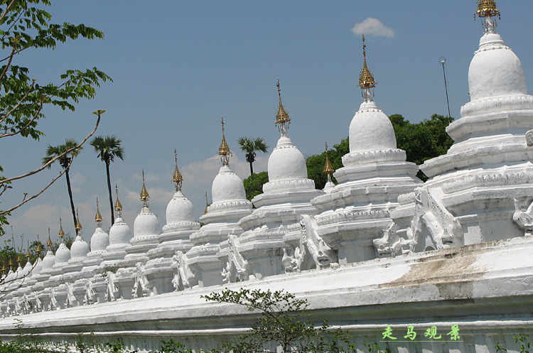 阿都瑪希寺的大門,由白色大理石經(jīng)書圍繞著金光四射的寺廟大門。在修建廟宇的問題上,緬甸人是毫不吝嗇的。為什么人們會說緬甸是富饒中的貧困,原因也許就在此。緬甸人將一生的很多時光和財富都貢獻給了佛。