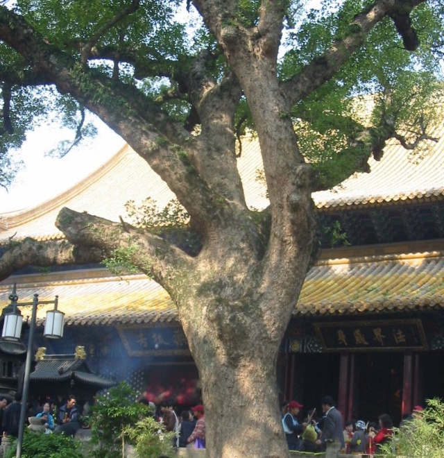 寺內(nèi)古樟樹參天,雖然株數(shù)有限,但枝繁葉茂。古寺、宗廟常見銀杏,一般為雌雄雙株。但樟樹是雌雄同株,腋生於枝之先端,圓錐花序。漿果球形,果熟呈紫黑色。樟樹的木材上有許多的紋理所以叫樟樹。其根、莖、枝葉均可提煉樟腦油, 為重要經(jīng)濟樹種。普濟寺的古樟幾個人合抱不過來,單憑這古老的樟樹則透出這座寺廟的久遠。望樹及人,我們一生比陸地上許多動植物生命遠遠要短,人類同時代生活地球之上,在有限生命中為何還自尋煩惱?