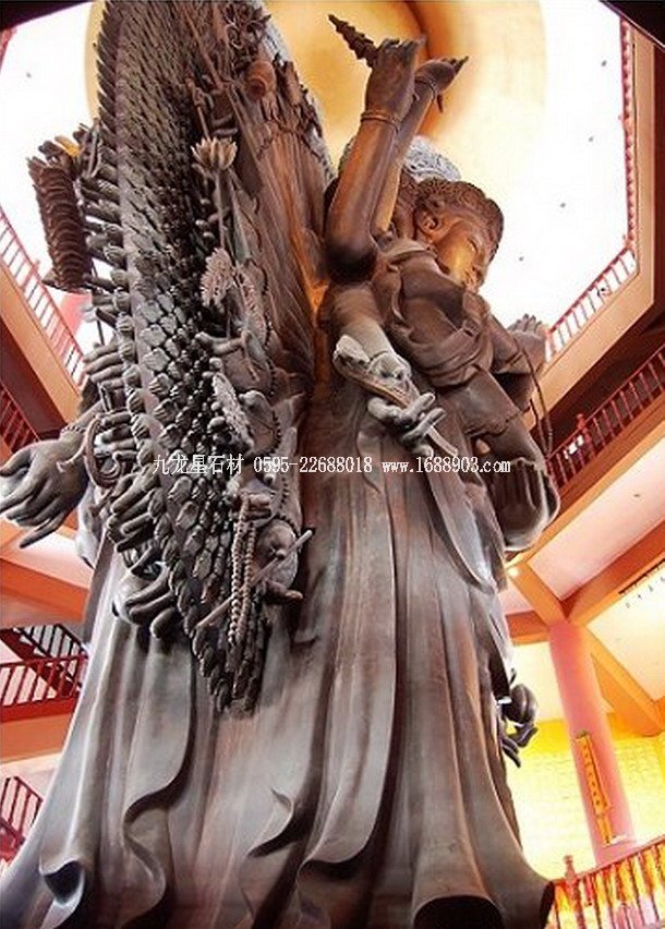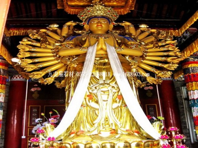 在中國這個(gè)信佛又不虔誠的半佛國度里,不少寺院里,包括西藏巴松錯(cuò)扎西島上的錯(cuò)宗工巴寺院里,都供奉有千手觀音雕塑像。千手觀音全稱:千手千眼觀世音菩薩。又稱:千眼千臂觀世音菩薩,是佛教中的六大觀音之一。