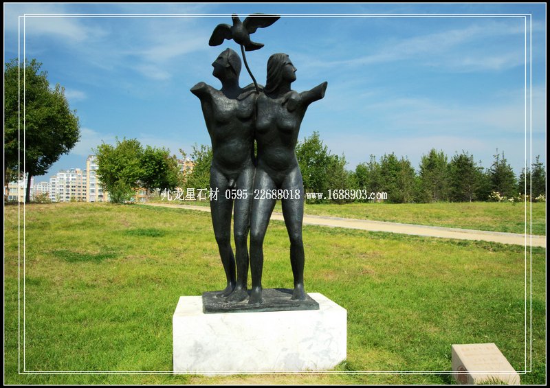完美體現(xiàn)“友誼·和平·春天”的主題雕塑塔,由國(guó)內(nèi)著名雕塑大師葉毓山、潘鶴、程允賢、王克慶、曹春生共同創(chuàng)作完成。塔高29.5米,由少女、鮮花與和平鴿組成,周圍環(huán)繞著反映五大洲民族風(fēng)情的五組鑄銅人物雕像和漢白玉浮雕,造型精美,氣勢(shì)壯觀,榮獲第三屆全國(guó)城市雕塑建設(shè)成就展優(yōu)秀作品獎(jiǎng)。