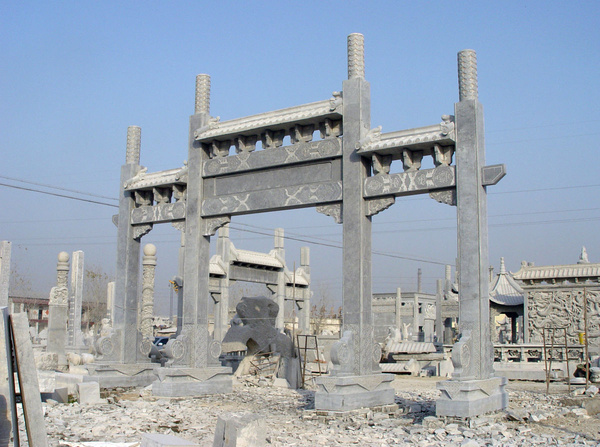 牌坊是我國古建筑中的一朵奇葩,造型獨(dú)特,源遠(yuǎn)流長(zhǎng),至今仍在發(fā)展。石牌坊是我國所獨(dú)有的標(biāo)志性建筑物,同時(shí)有著一定的文化淵源。我國大多數(shù)的古代建筑都是以群組的形式或單個(gè)的形式出現(xiàn),有的氣勢(shì)磅礴、規(guī)模宏偉。但是牌坊卻有所不同,牌坊自成一體,是以簡(jiǎn)約而細(xì)膩的表現(xiàn)手法形成的一種獨(dú)特的建筑形式。實(shí)際上,牌坊制作起源于門,不僅有門的功能,并與雕刻、書畫、文學(xué)相結(jié)合,牌坊制作較石雕牌樓簡(jiǎn)單,上面沒有斗拱或樓檐。