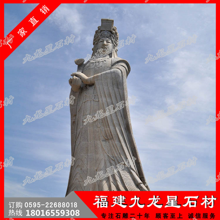 大型石雕媽祖中國民間在海上航行要先在船舶啟航前要先祭媽祖,祈求保佑順風(fēng)和安全,在船舶上立媽祖神位供奉。這就是“有海水處有華人,華人到處有媽祖”的真實(shí)寫照。而影響所及,媽祖由航海關(guān)系而演變?yōu)椤昂I瘛?、“護(hù)航女神”等,因此形成了海洋文化史中最重要的中國民間信仰崇拜神之一。
