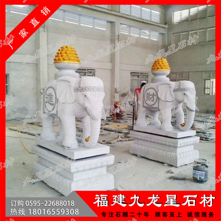 招財(cái)石雕大象在人們的生活中是很普遍,尤其是在酒店、公司、工廠、別墅、銀行、宮殿、寺廟、佛塔、橋梁、府邸、林園以及陵墓中都是很常見的建筑物,而石頭大象就是用石材作為原材料,然后經(jīng)過雕刻而得來大象的形象,是中國傳統(tǒng)建筑中很常見的裝飾物。石頭大象的材料可以選擇天青墨玉、霞玉、緬甸玉、砂巖、花崗巖、漢白玉等,不管是什么材質(zhì)的石頭大象,都是非常地精致秀美。招財(cái)石雕大象的寓意就是吉祥如意、心想事成的含義。傳說大象是觀音的坐騎,也是觀音的隨從,可以給人們帶來保護(hù)同時(shí)還可以避免災(zāi)難。